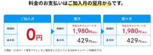 期間中に「スカパー!基本プラン」を契約すると、スカパー!基本プランの視聴料が2ヶ月の間半額になるというものです。