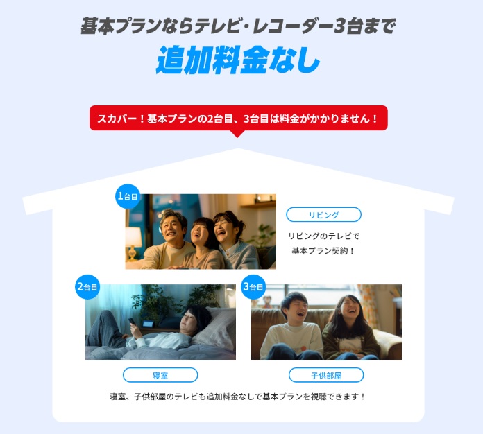 さらに、テレビまたはレコーダー1台分の料金で契約した端末を含む合計3台まで追加料金なしで視聴できるようになります。