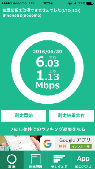 スピードテストをした端末は、ドコモのiPhone5sです。