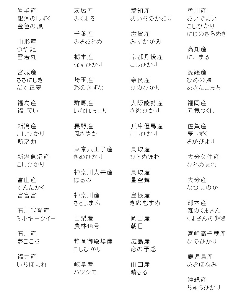 えらべる60種類の銘柄米