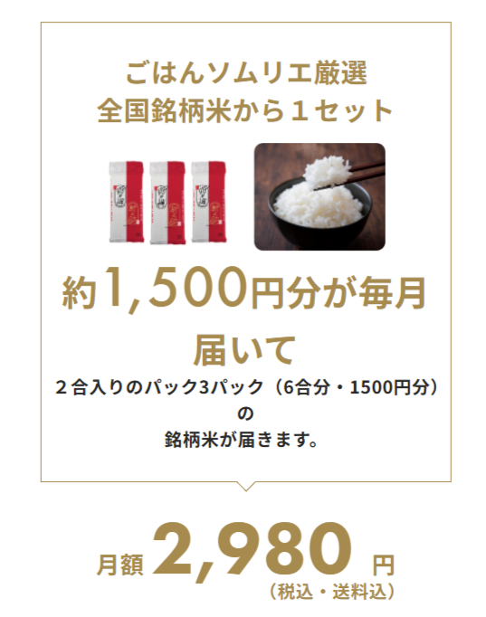 魅力的な定期購入サービスで銘柄米が毎月届きます。