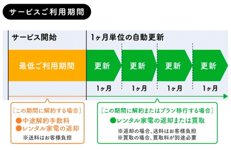 1カ月単位での自動更新、