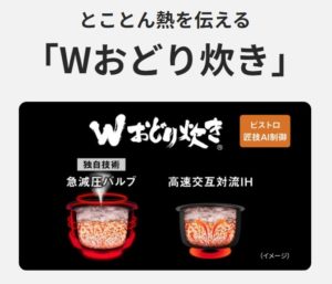 この炊飯器の最大の特徴は、パナソニック独自のWおどり炊きです。
