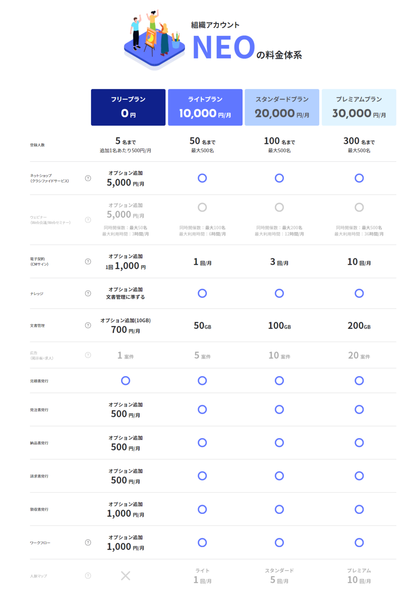 組織アカウントのNEOの料金も同じく4つに分かれていて、