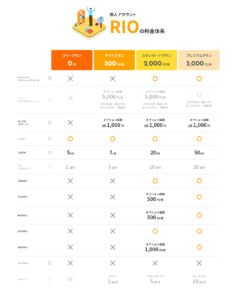 個人アカウントのRIOの料金プランでは、0円のフリープランがありますが、