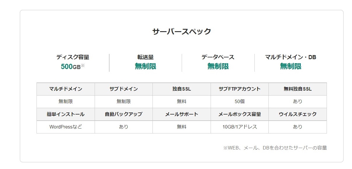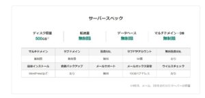レンタルサーバー料金とドメインずっと無料サービスが含まれています。