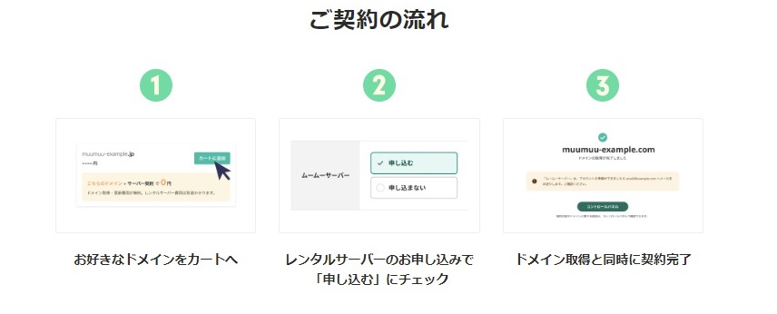 ドメイン取得とムームーサーバーの契約が同時に完了します。